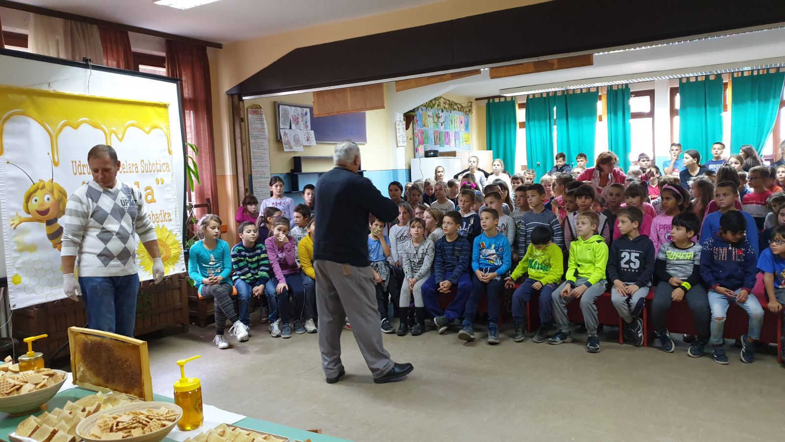 У уторак 5. новембра 2019. ученици нижих разреда наше школе имали су прилику да сазнају од пчелара из удружења “Пчела” о животу пчела и благотворном дејству меда на људски организам. Том приликом су се осладили овим здравим производом и уживали у дружењу.